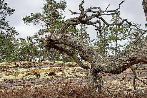 Pitkin matkaa saat ihastella erilaisia sammaleita ja jäkäliä. Käkkärämännyt antavat oman ilmeensä alueelle. Niitä löytyy jos jonkin mallisia ja kokoisia, harmaaksi kelottuneita taideteoksia. Vain mielikuvitus on rajana, jos lähtee kuvittelemaan, mitä ne kaikki kertovat meille entisaikojen elämästä tai mitä ne voisivat esittää.