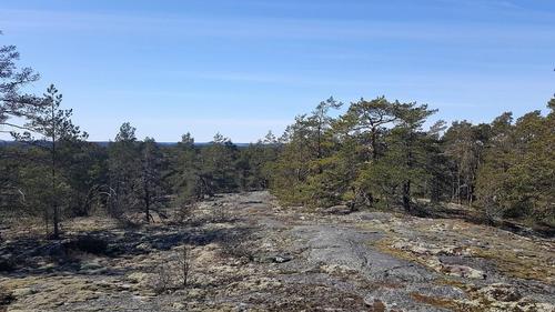Valtavien siirtolohkareiden vastapainoksi nouset laajalle avokallioalueelle. Siinä onkin ainoa kohta, joka vaatii vähän fyysistä ponnistelua. Tarkkaavainen kulkija voi löytää vaikkapa teeren papanakasan tai kuulla kehrääjän ääntelevän. Luonto on läsnä kaikkialla. Kuivilla kallioilla ja kosteikkonotkelmissa viihtyvät parhaiten varvut kuten suopursu, variksenmarja tai juolukka. Tässä kohtaa polkua näköalat laajalle ympäristöön ovatkin jo todella komeat. Metsää loputtomiin joka puolella, mutta myös meri pilkottaa lännen suunnalla. Joitakin nykypäivän maamerkkejä kuten linkkimastoja ja ainakin yksi vesitorni erottuu maisemasta. Lähituntumassa voi tunnistaa myös Taattistenjärven ja Merimaskuntien.