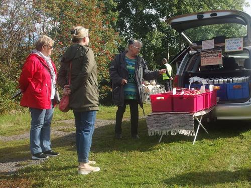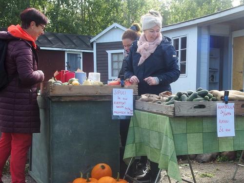 Sopivasti ennen markkinoiden alkua loppui aamupäivän pieni sadekuuro ja aurinkoinen sää helli markkinaväkeä. Kiitos kaikille mukana olleille, sekä vieraille, että myyjille!